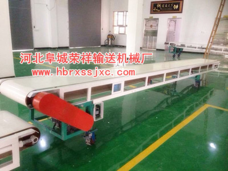 荣祥的平板输送机大多采用PVC的输送带,这样的输送带的好处就是输送面平滑,适合食品,粮食等物料的输送。